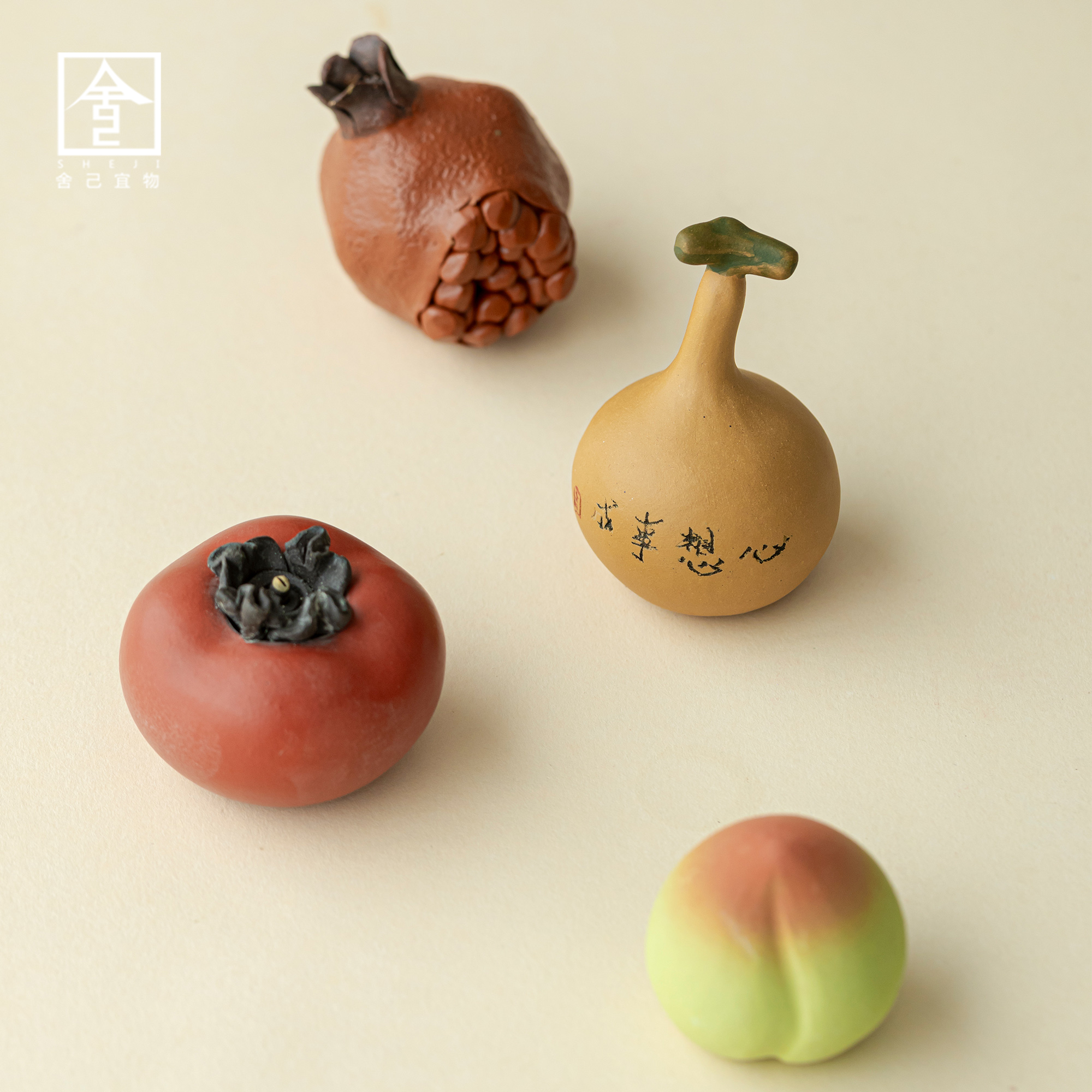 四喜临门茶宠茶盘摆件可养禅意茶道纯手工茶玩柿子石榴葫芦桃子