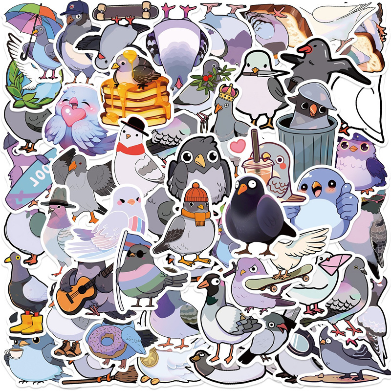 50张卡通鸽子贴纸Q版 饰贴画防水涂鸦贴 萌鸽笔记本电脑手机壳滑板水杯文具手账本DIY装