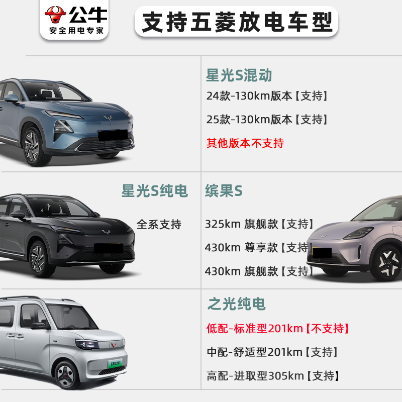 公牛五菱星光S 缤果S汽车外放电枪插座取电器放电器插排 之光EV