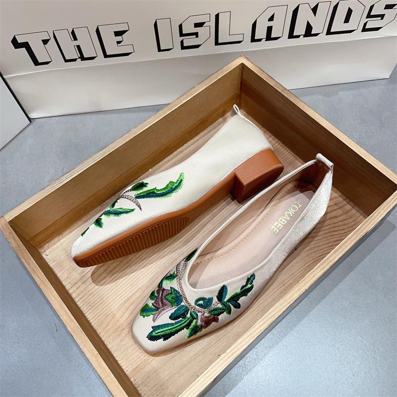 仙女风瓢鞋 秋季 浅口百搭中跟奶奶鞋 大码 真皮单鞋 女鞋 粗跟2025新款