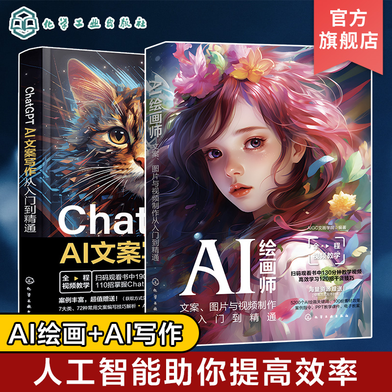 ChatGPT文案使用技巧 2册 AI绘画师文案图片与视频制作从入门到精通 AI文案写作从入门到精通 AI文案工作者AI绘图师参考 ChatGPT