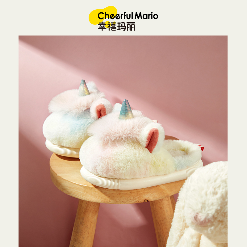 保暖 女童幼儿包跟儿童毛拖鞋 幸福玛丽宝宝棉拖鞋 秋冬男童地板棉鞋