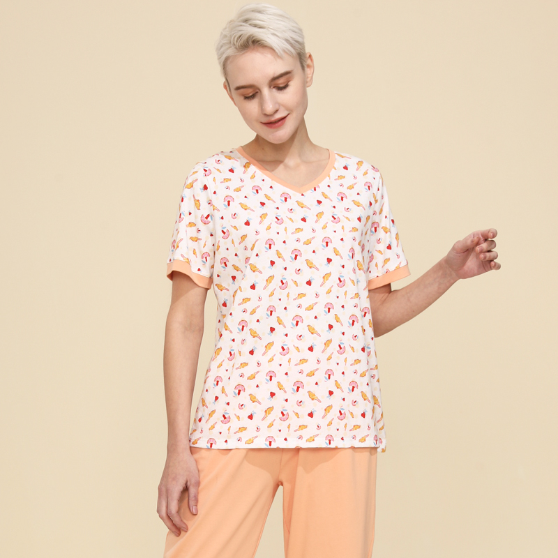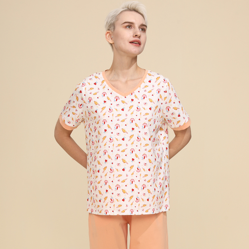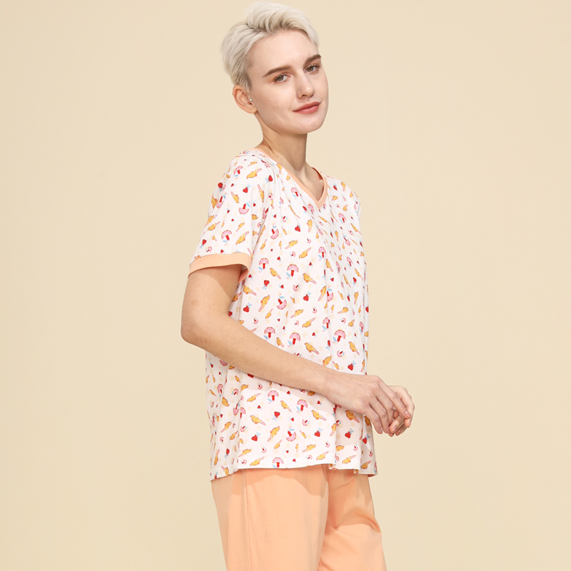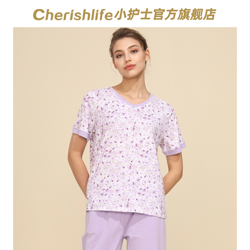 家居服套装 中老年短袖 纯棉休闲外穿宽松加肥大码 小护士睡衣女夏季