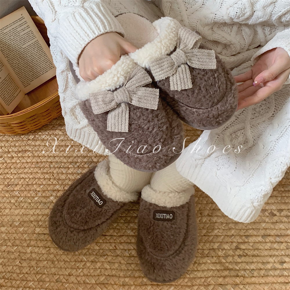 一字拖毛毛鞋 加绒加厚东北大棉鞋 子棉拖 新款 厚底雪地靴女2025冬季