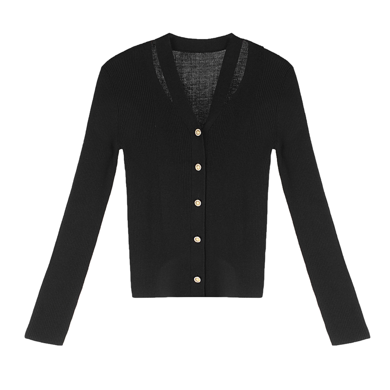 显瘦黑针织衫 固执秋季 长袖 复古v领修身 毛衣00033MY08615 新款