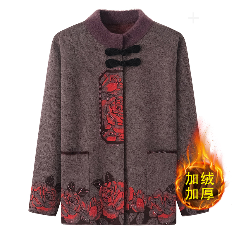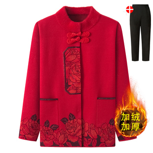 老太太秋冬外套老人衣服女 开衫 老年人秋装 奶奶毛衣加绒加厚妈妈装