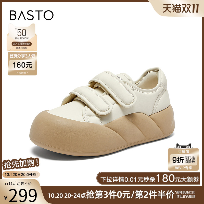 NC703AM4 魔术贴松糕厚底女休闲面包小白鞋 百思图春季 商场新款