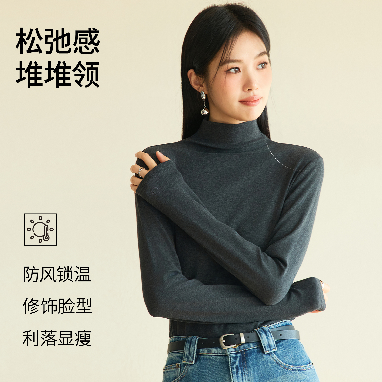 伊芙丽outlets店白色亲肤舒适半高领T恤打底衫 春秋基础内搭纯色女