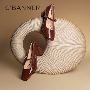时装 新款 单鞋 温柔风鞋 千百度女鞋 子粗跟真皮中跟通勤鞋 秋季
