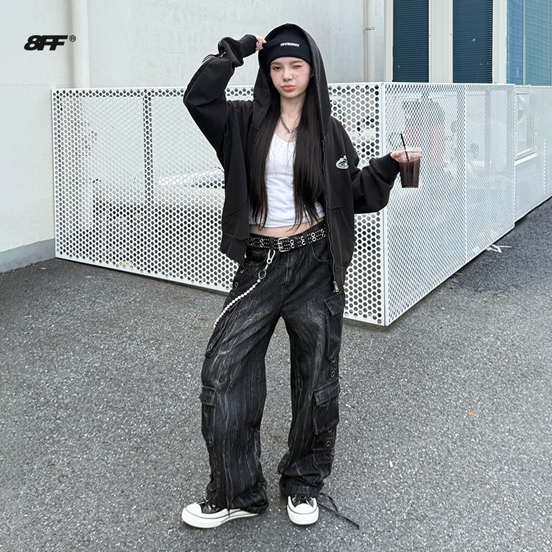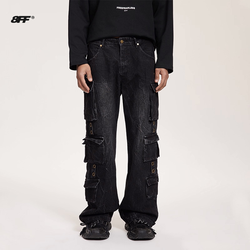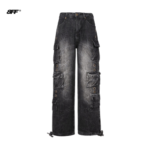 特大码 阔腿宽松休闲长裤 牛仔裤 潮牌痞帅直筒裤 子 男春秋季 摩朝美式