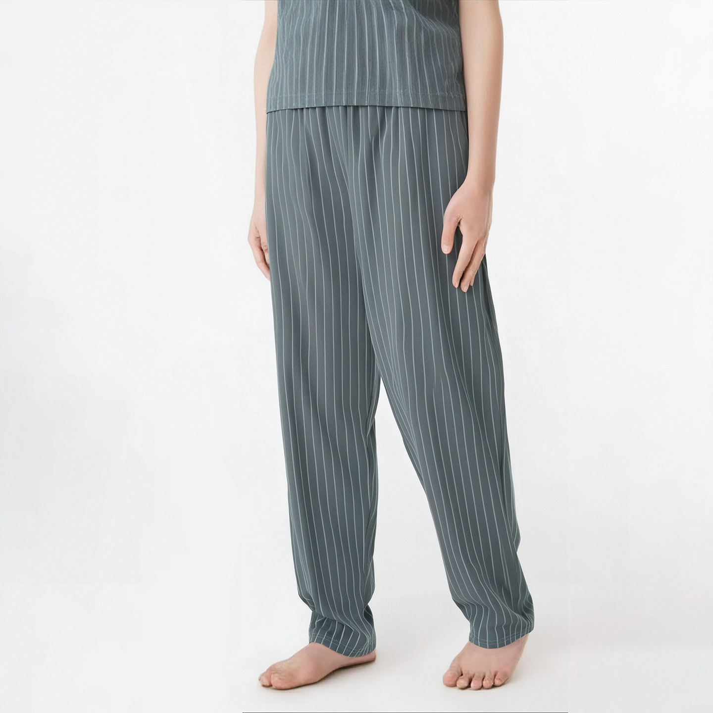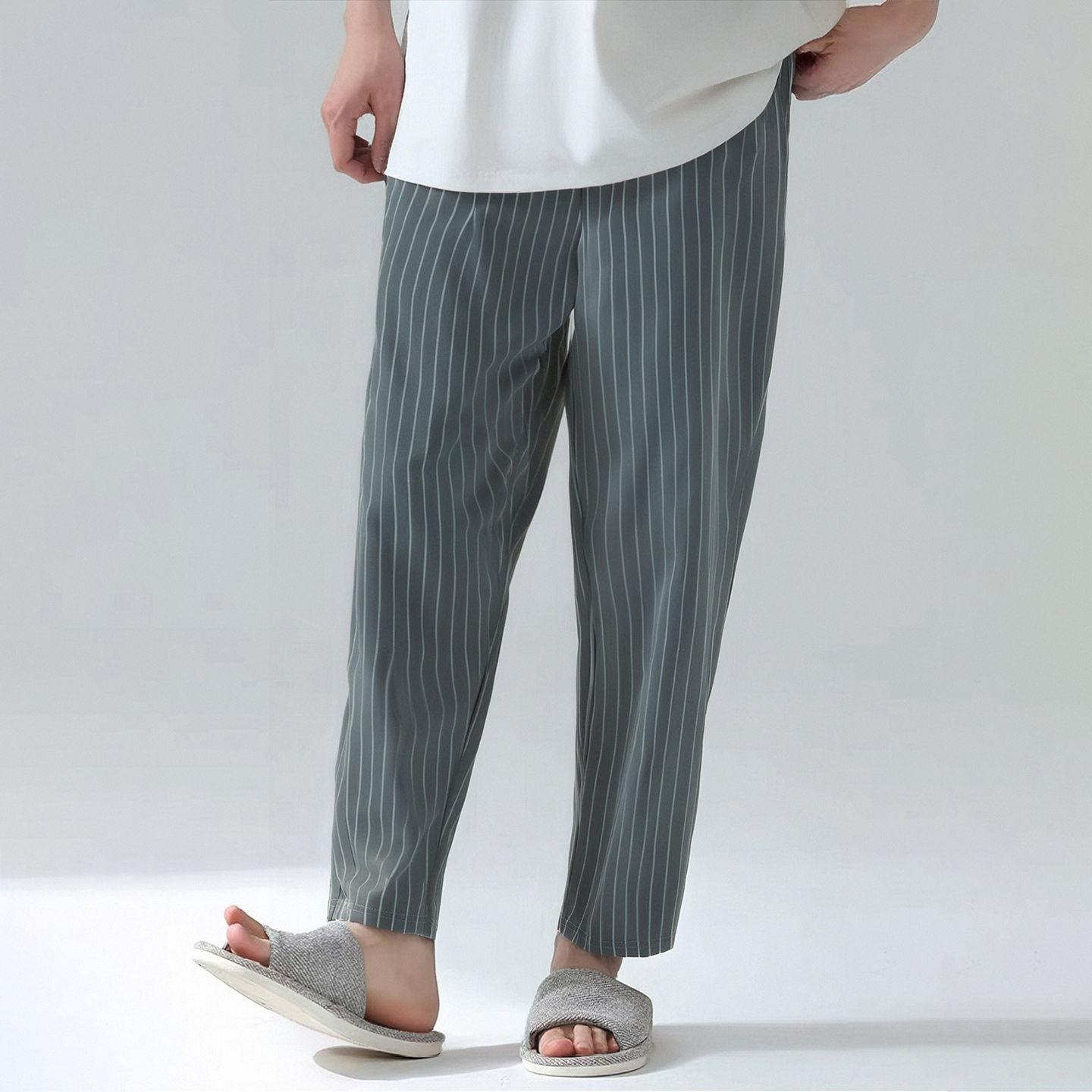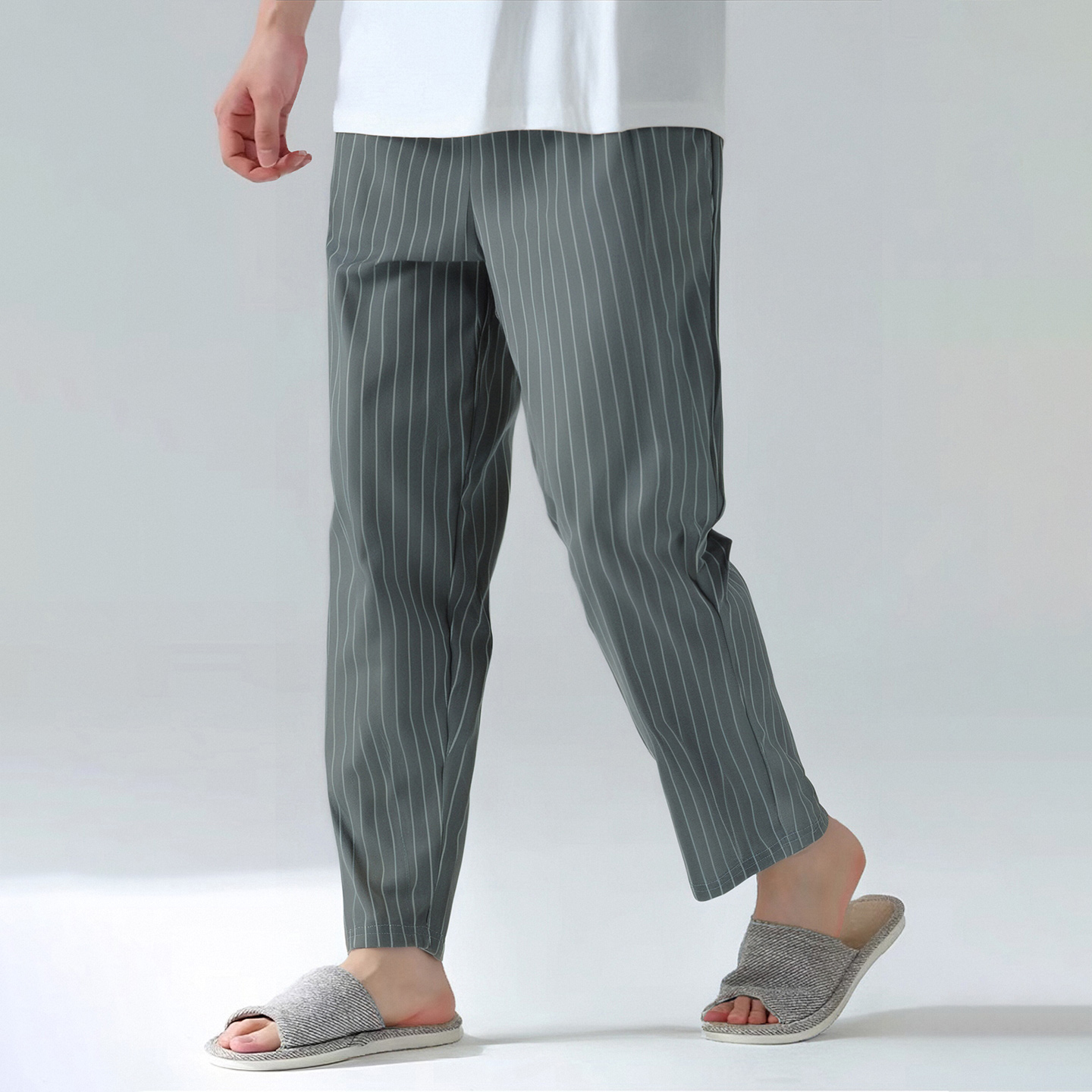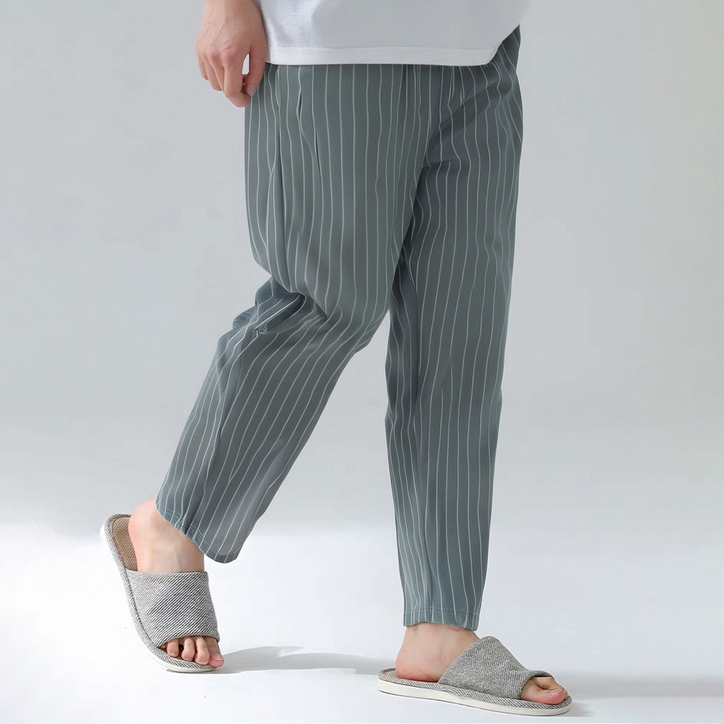新款 夏季 宽松透气薄款 可外穿时尚 夏 宜而爽条纹男士 休闲家居裤 睡裤