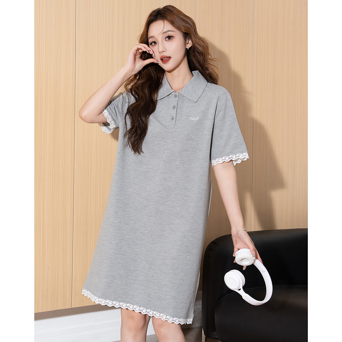 唐狮灰色休闲Polo裙连衣裙女2025夏季 蕾丝花边设计拼接裙子g9 新款