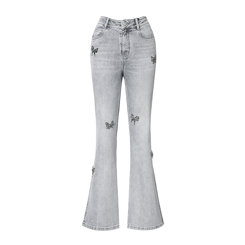 微喇牛仔裤 显瘦通勤蝴蝶钉珠经典 Koradior拉珂蒂优雅女秋季