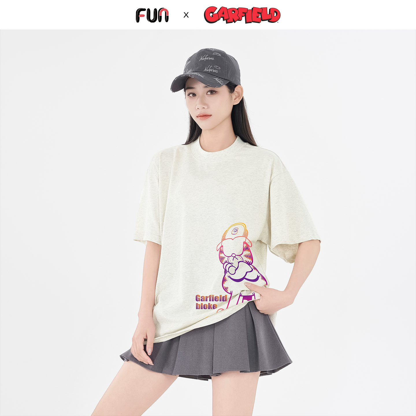 新潮抗菌凉感短t袖 潮牌T恤夏季 时尚 Fun渐变加菲猫联名男女同款