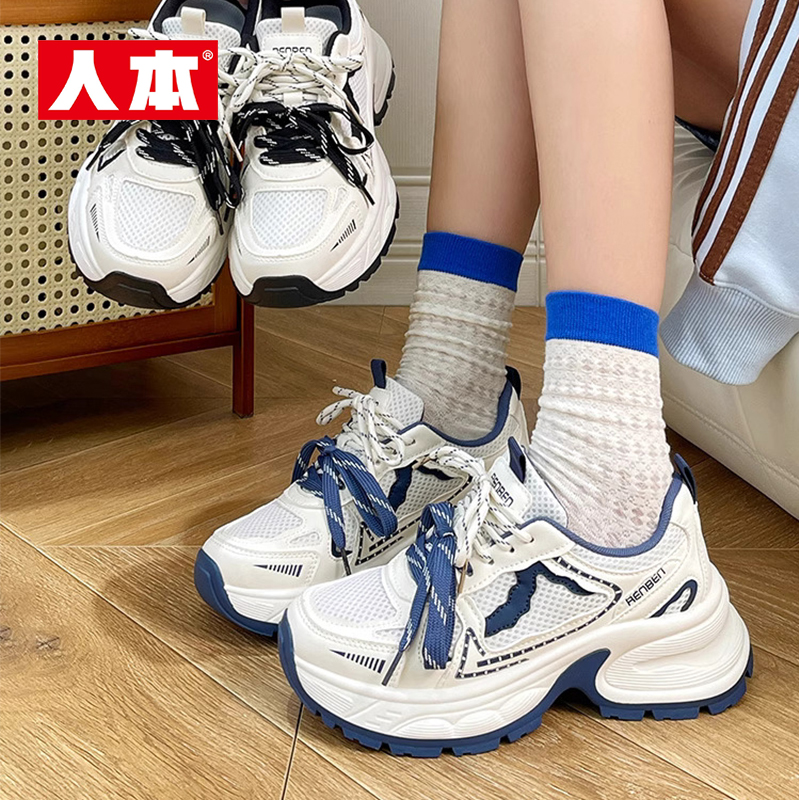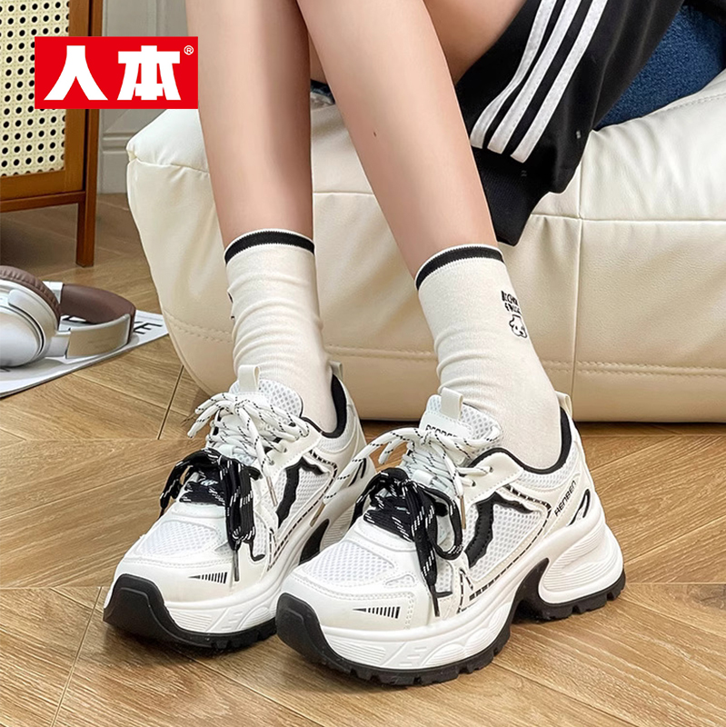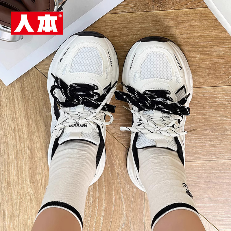 女百搭小白鞋 复古潮鞋 夏季 透气女鞋 新款 人本官方店网面透气老爹鞋