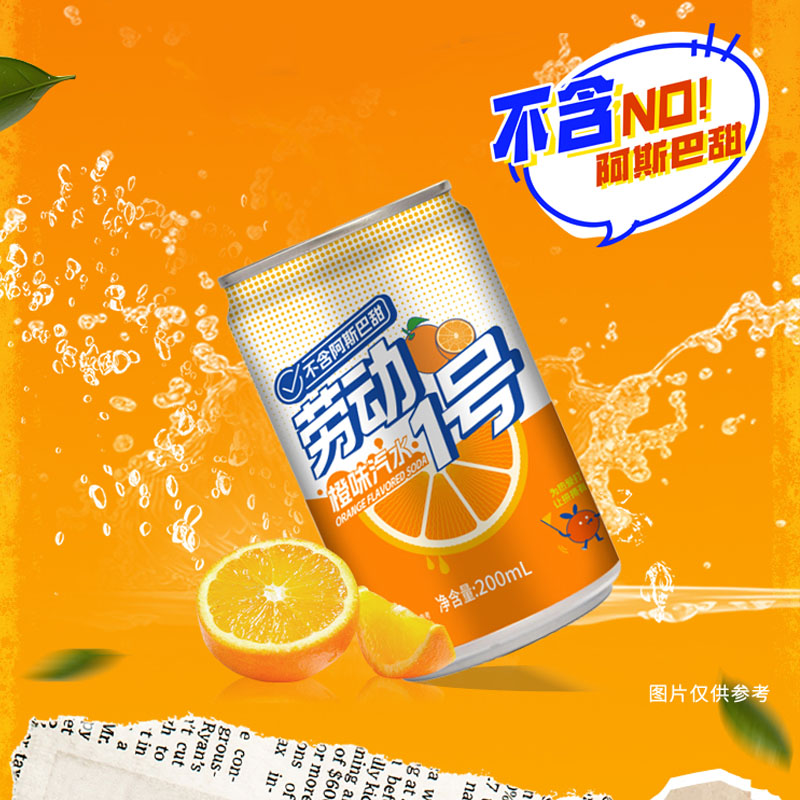 劳动1号橙味果味果汁汽水碳酸饮料迷你罐听装 24听 整箱200ml