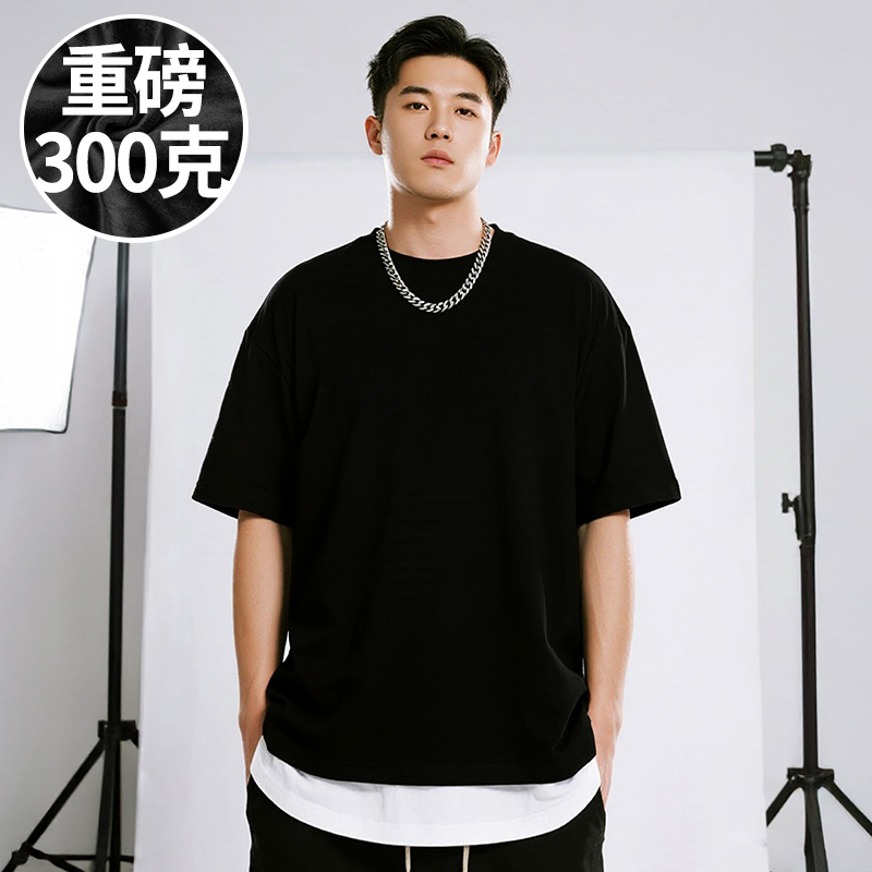 加肥加大码 胖子T恤短袖 男装 半截袖 港风潮牌美式 夏季 重磅复古男士