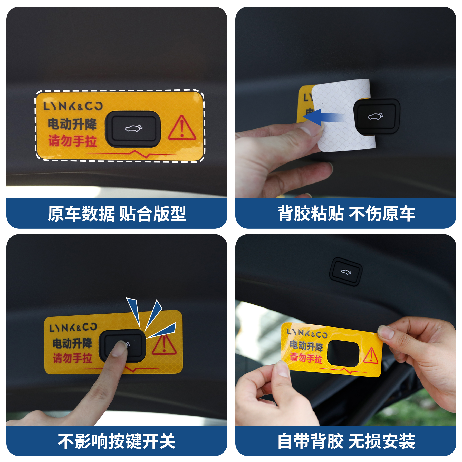 适用于领克900电动尾门按键贴后备箱装 饰贴纸车门警示提示贴纸