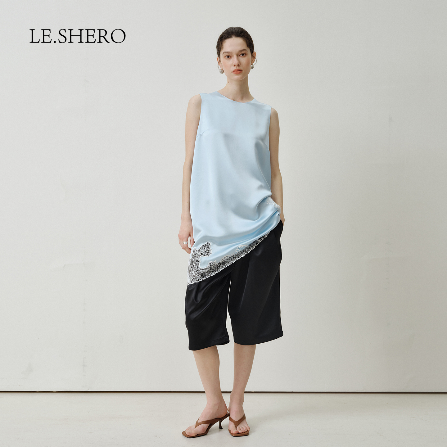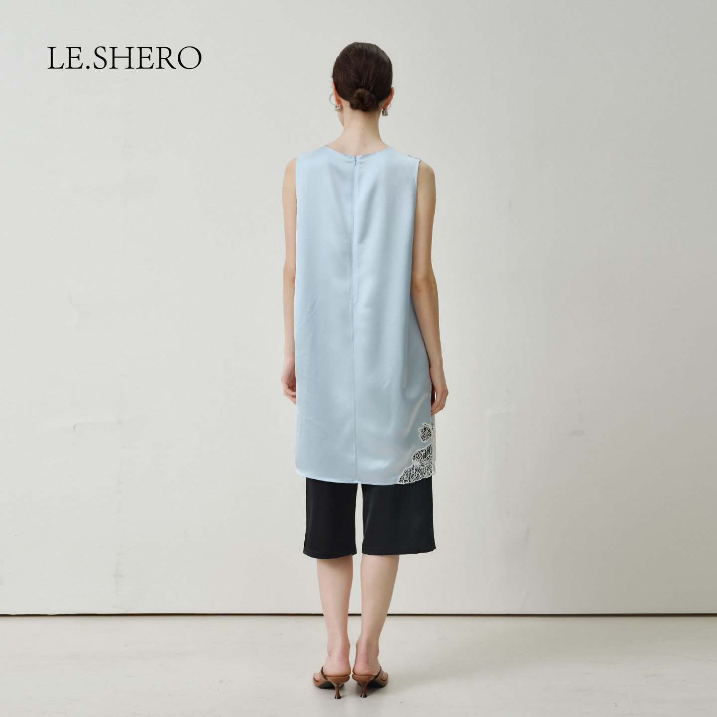 连衣短裙女设计感蕾丝拼接裙子 优雅刺绣无袖 LE.SHERO 胶囊系列