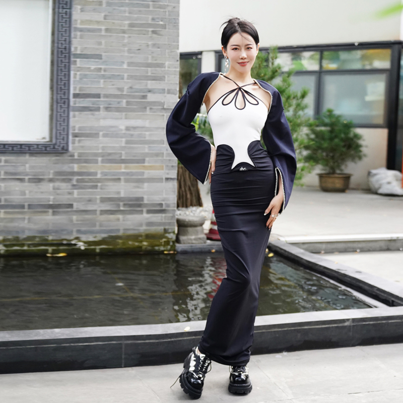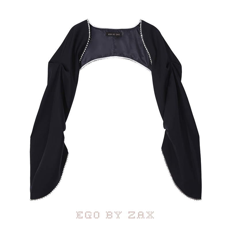 精选EGO ZAX设计师黑色马甲短披肩钻边精致套装 折