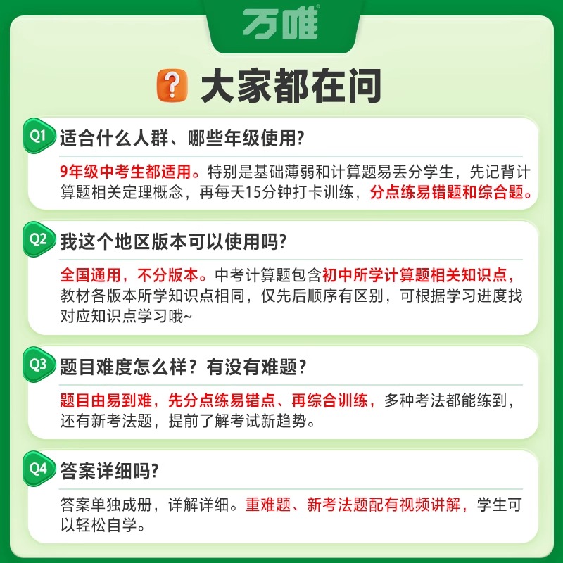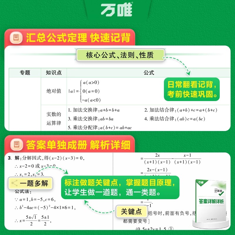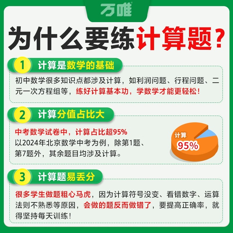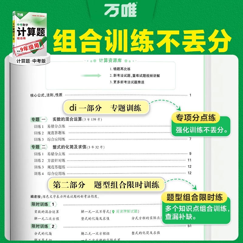 2026万唯中考数学计算题专项专题训练初一初二初三基础必刷试题八九年级上册满分思维强化初中口算题高效学霸练习册万维教育旗舰店
