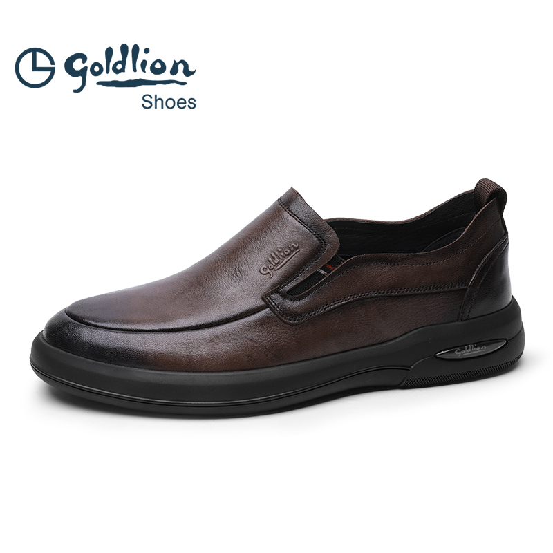 头层牛皮一脚蹬厚底商务休闲中老年爸爸男鞋 老人头皮鞋 男真皮秋季