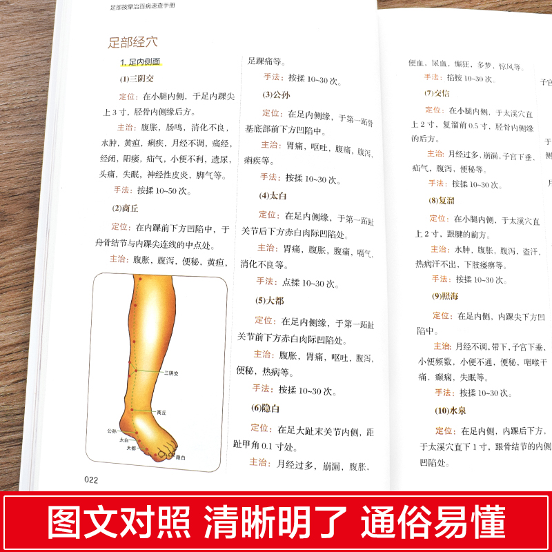 正版 脚底穴位按摩 包邮 足疗中医养生书籍 无师自通找穴位中医养生 足部按摩治百病速查手册一本通彩图版 足底百病消