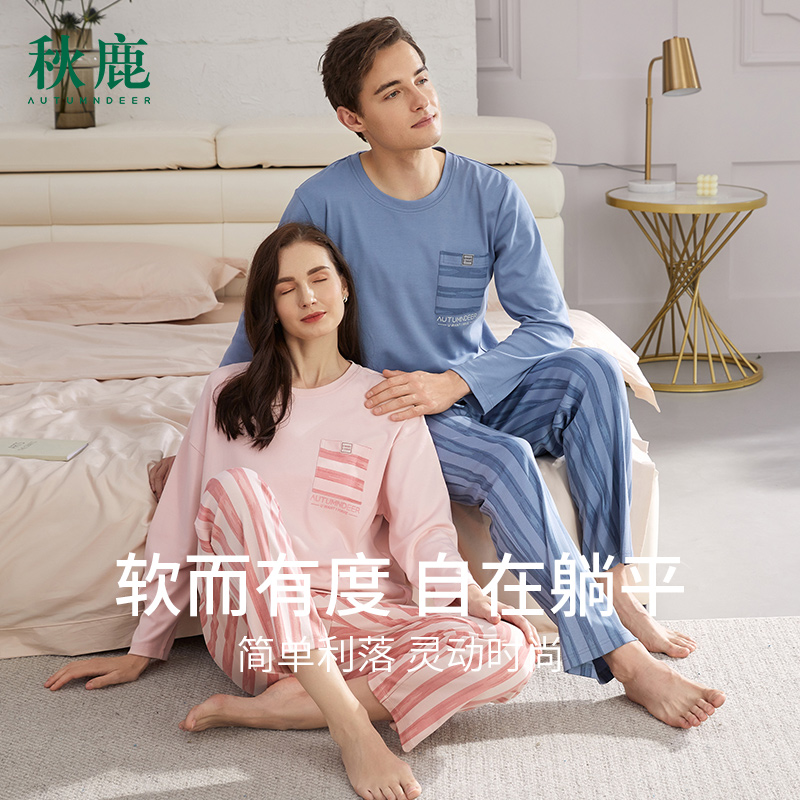 女春秋款 宽松家居服套装 防螨加大码 男士 秋季 芬腾情侣睡衣纯棉长袖