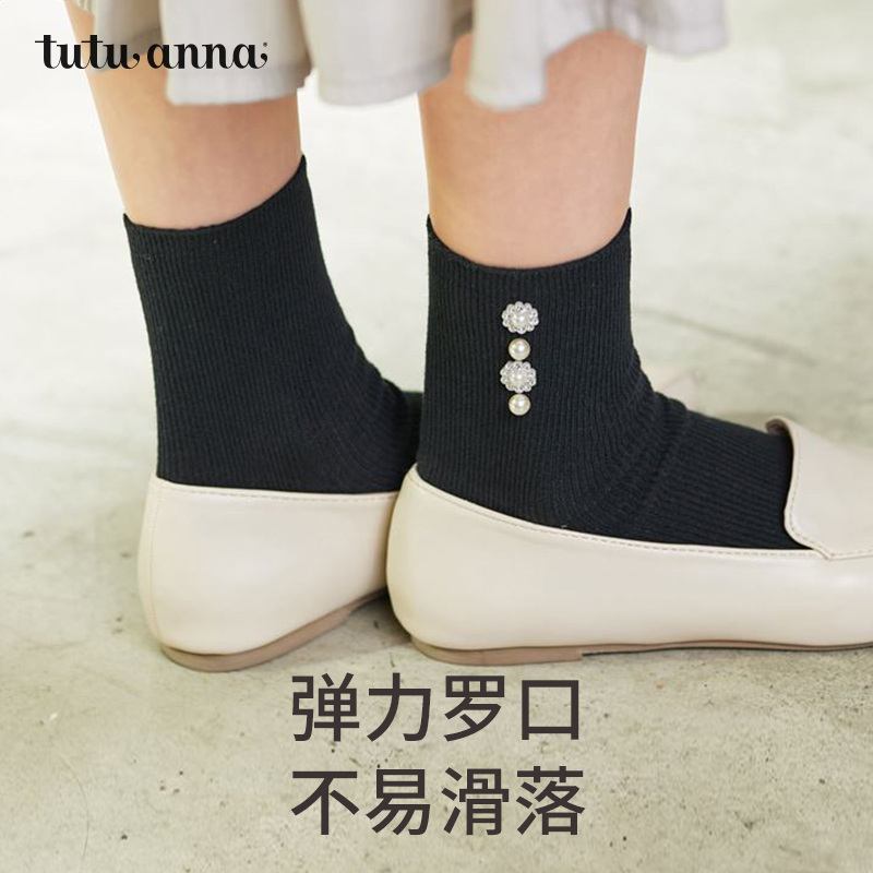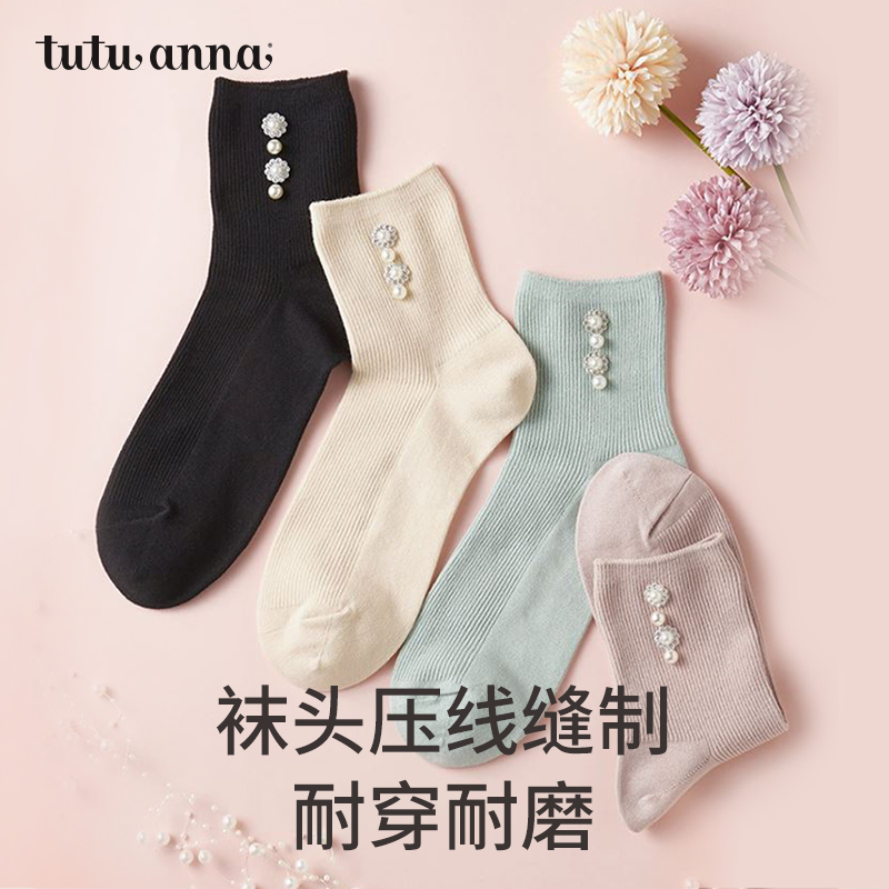 亲相见袜子女纯棉防臭中筒袜秋季 吸汗7a抗菌透气无骨白色女士短袜