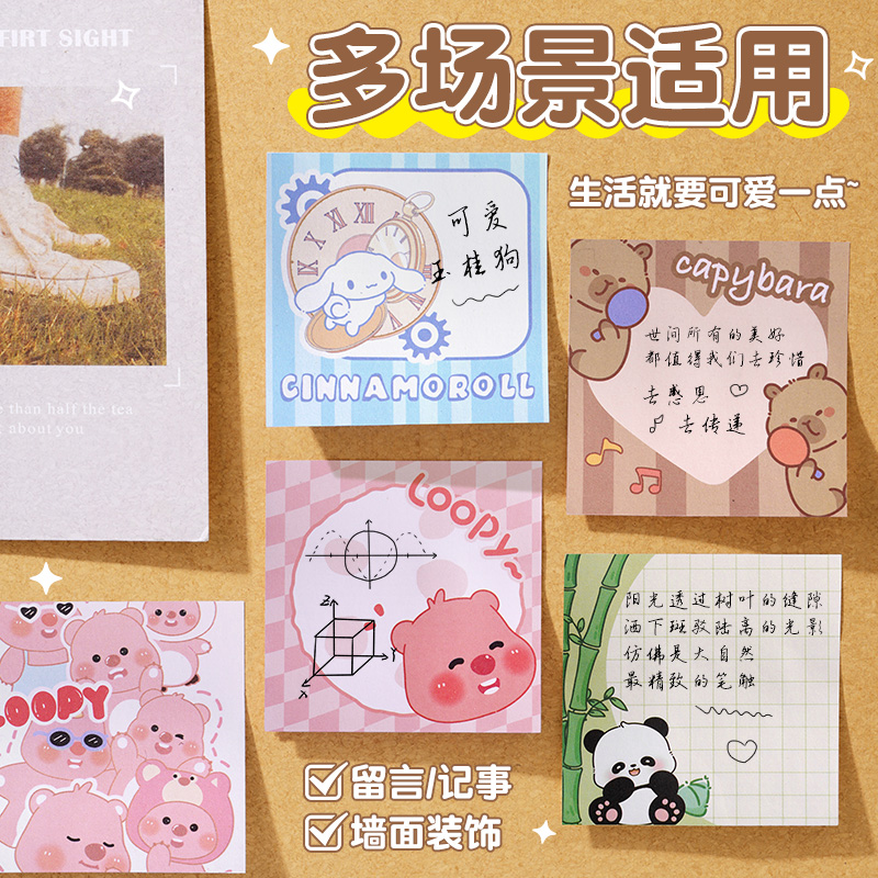卡皮巴拉便利贴小学生专用便签本初中生高颜值可爱女孩留言记事贴办公室N次贴高粘性错题贴纸可撕粘贴便条纸