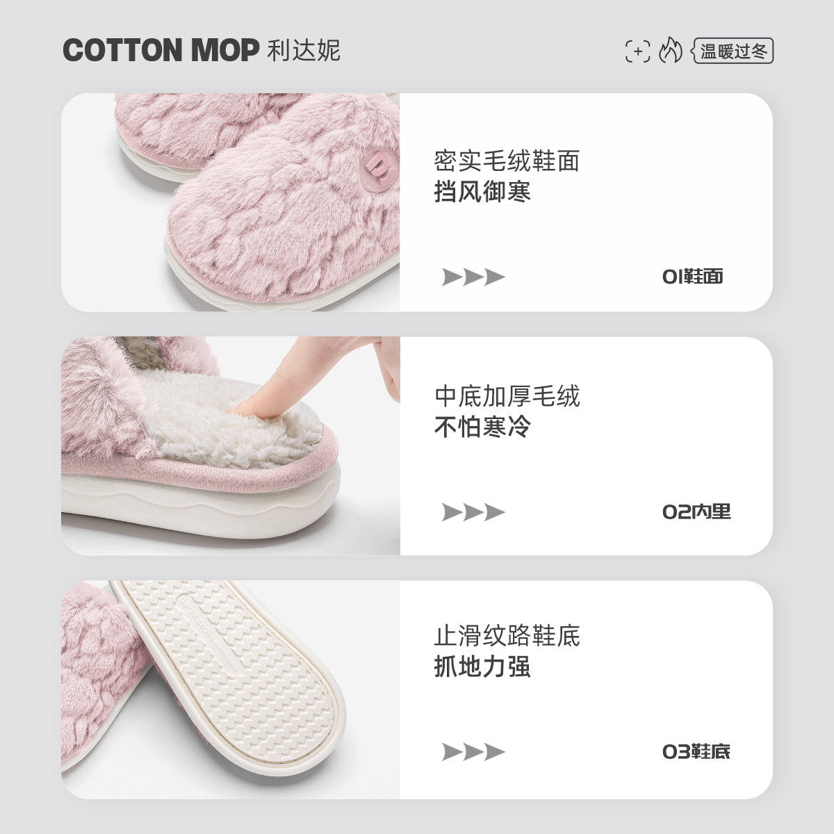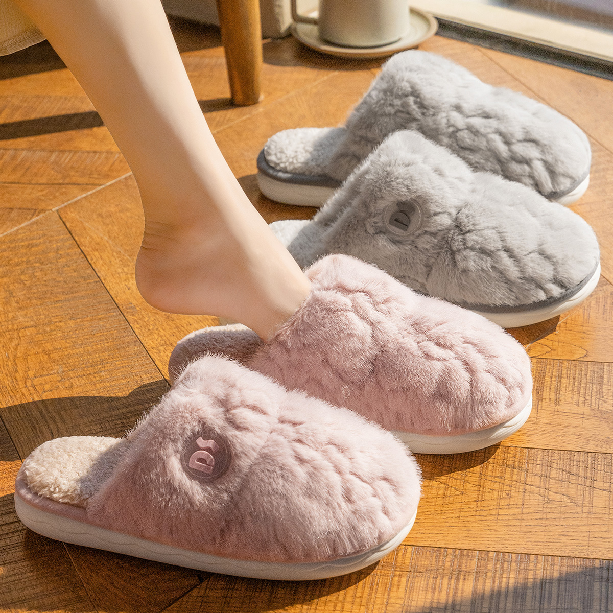 室内居家静音防滑保暖防臭情侣毛绒包头拖 2025新款 朴西棉拖鞋 女款