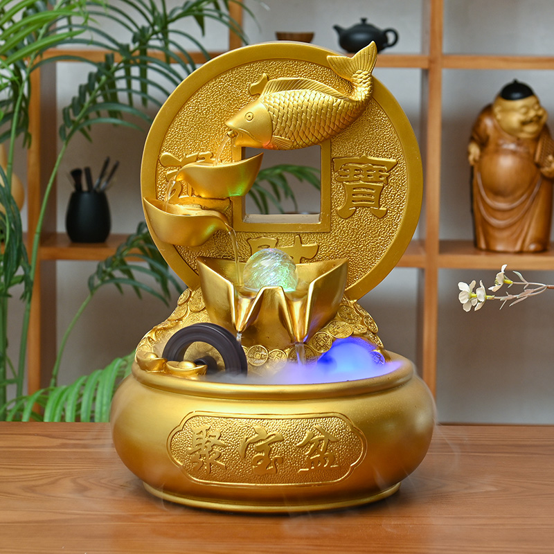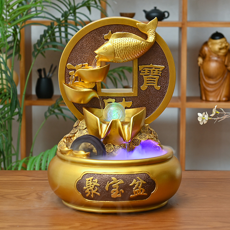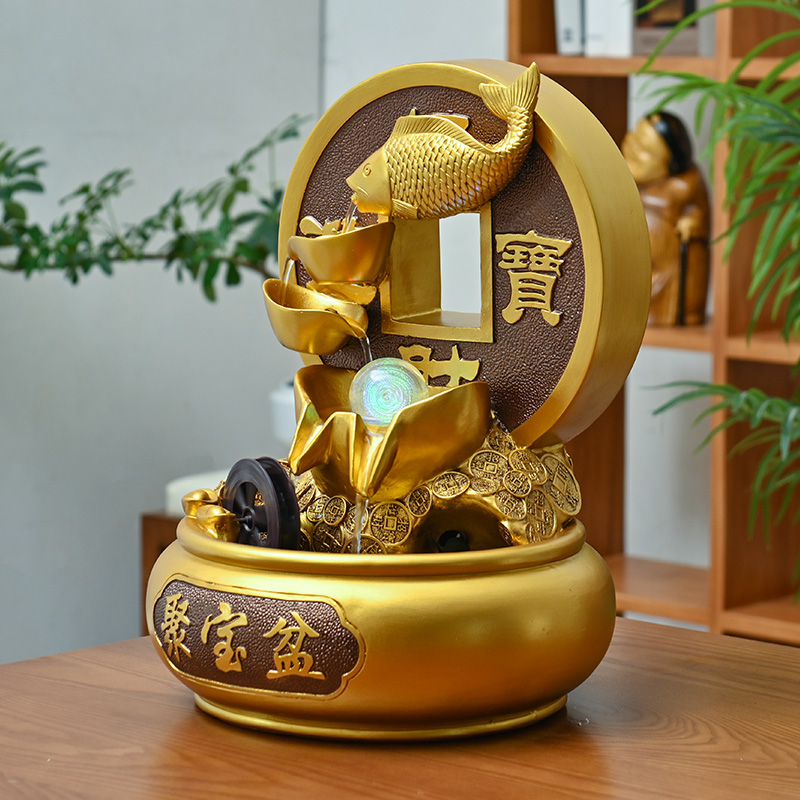 招财流水摆件循环水景观客厅办公室聚宝盆风水轮转运珠开业乔迁礼