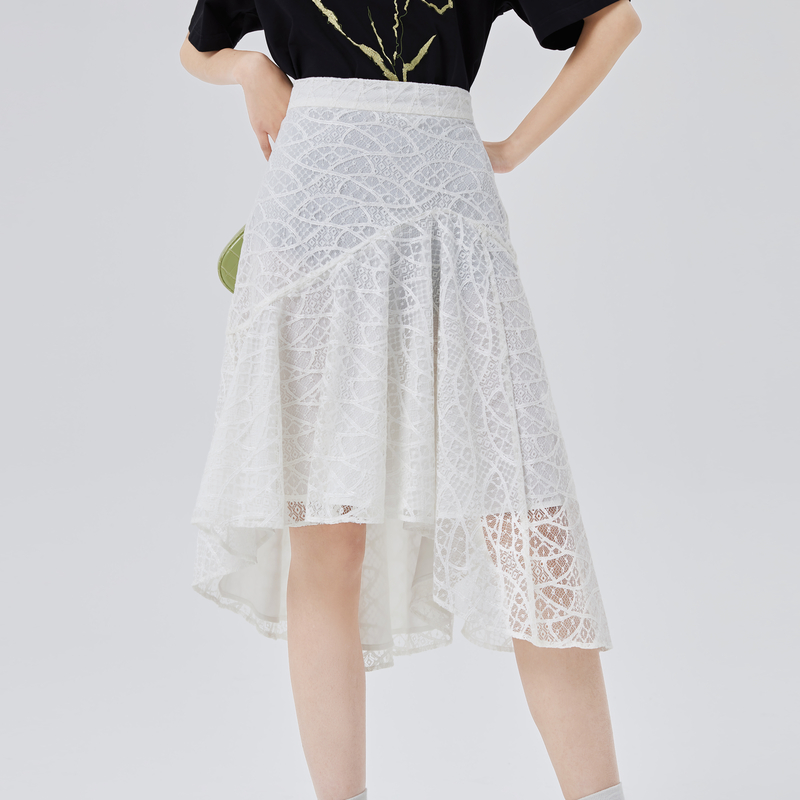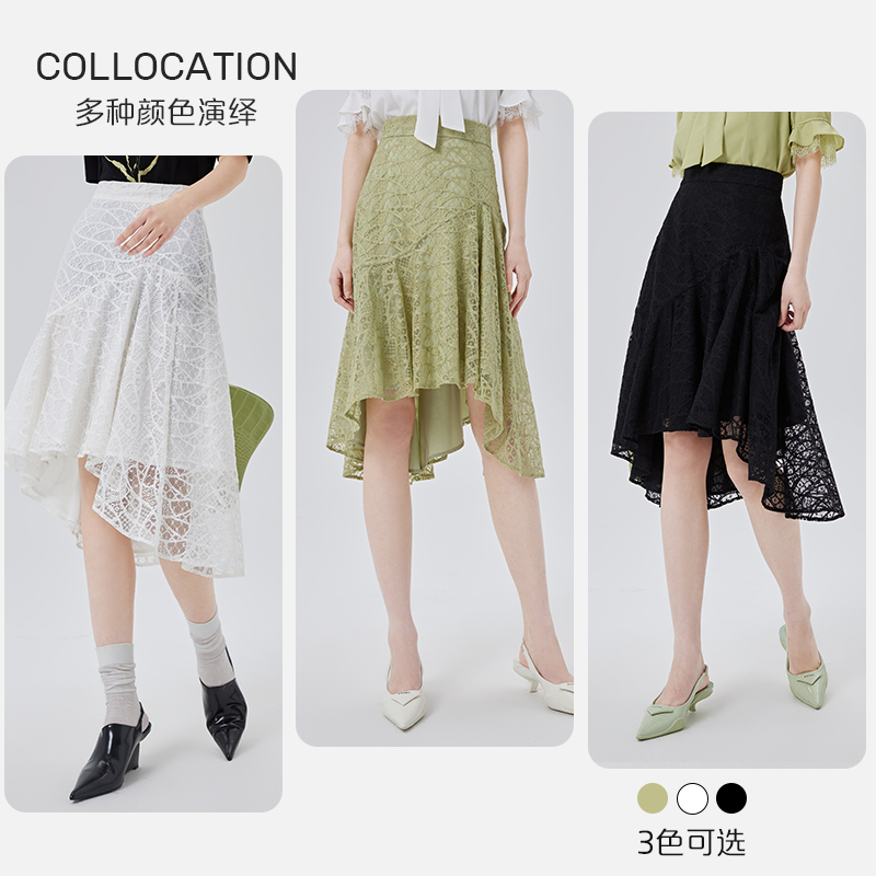 VIVICATHY2025秋不规则高级感皮裙女美拉德高腰荷叶边拼接半身裙
