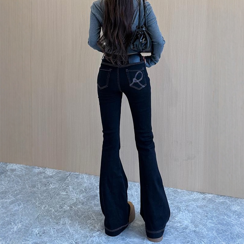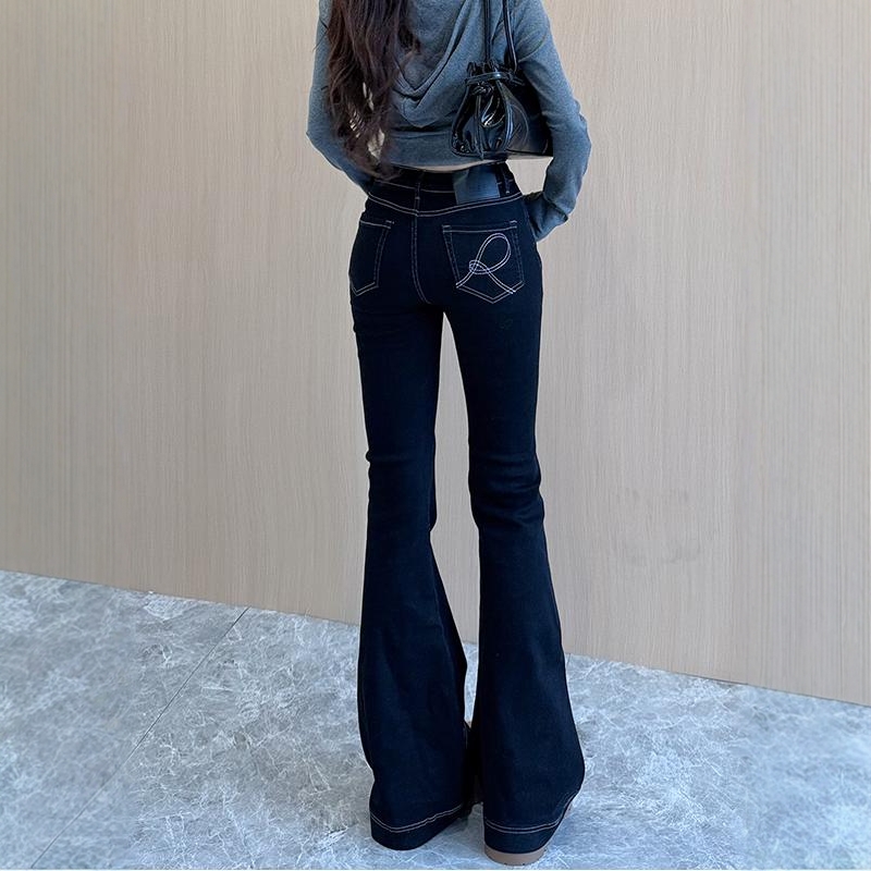 小个子加绒显瘦弹力马蹄裤 女春秋季 黑色高腰微喇牛仔裤 赵露思同款