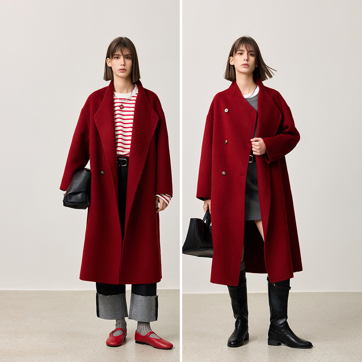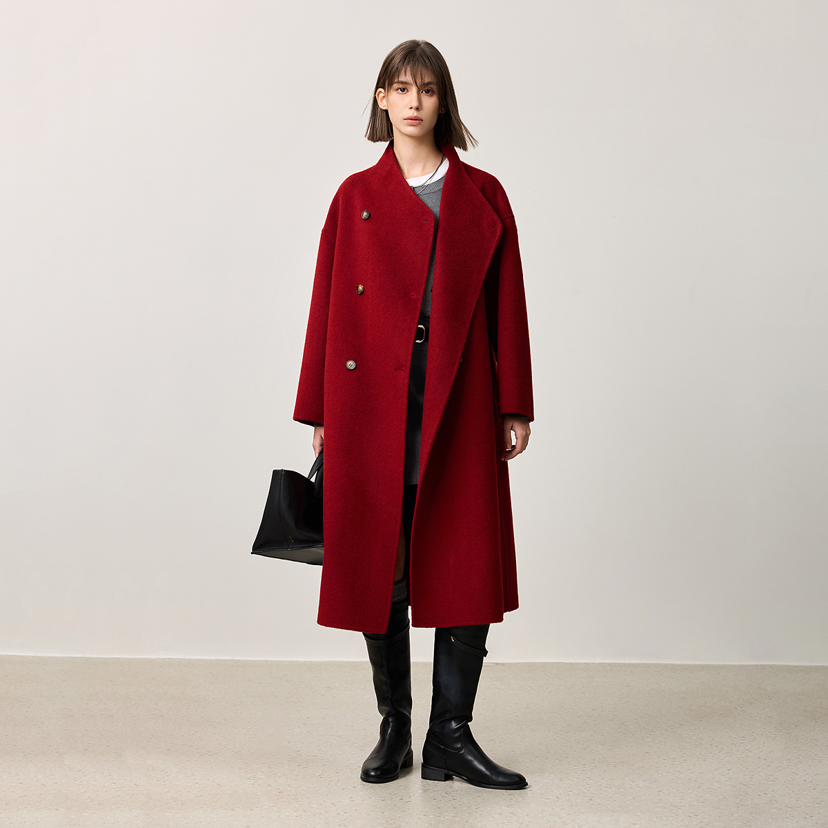 女装 LILY2024冬新款 绵羊毛连身烟囱领双面呢大衣女款 商场同款