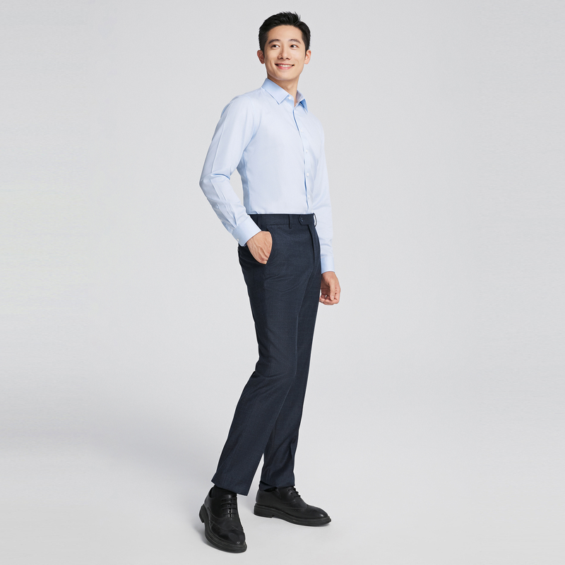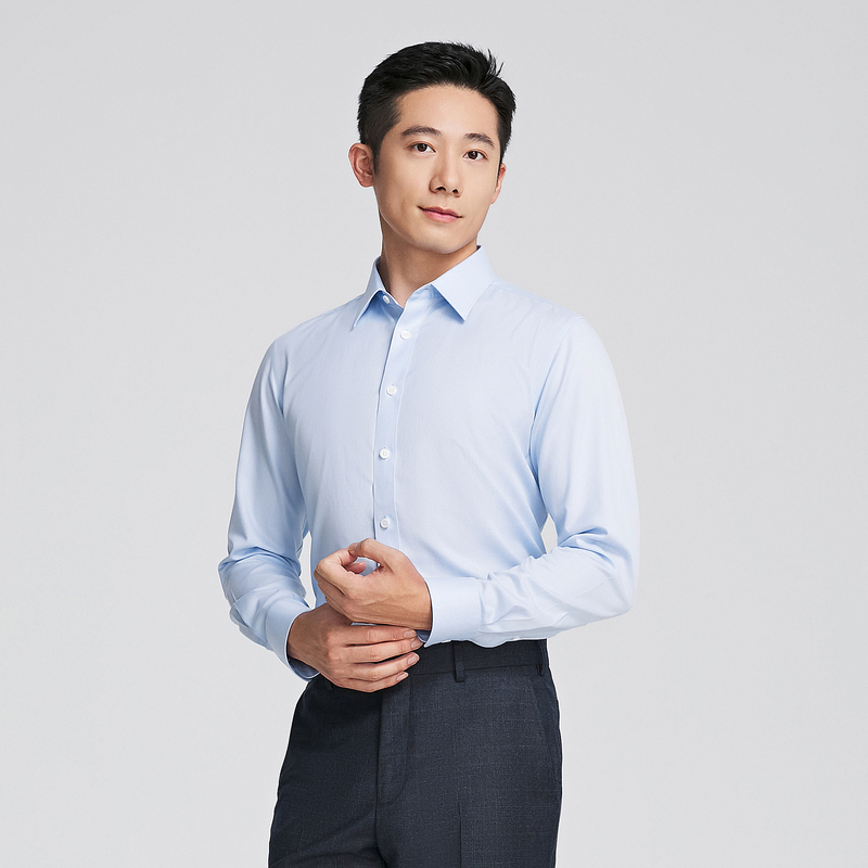 男士 男长袖 白衬衣 红豆含羊毛莫代尔蚕丝免烫抗皱衬衫 林更新同款