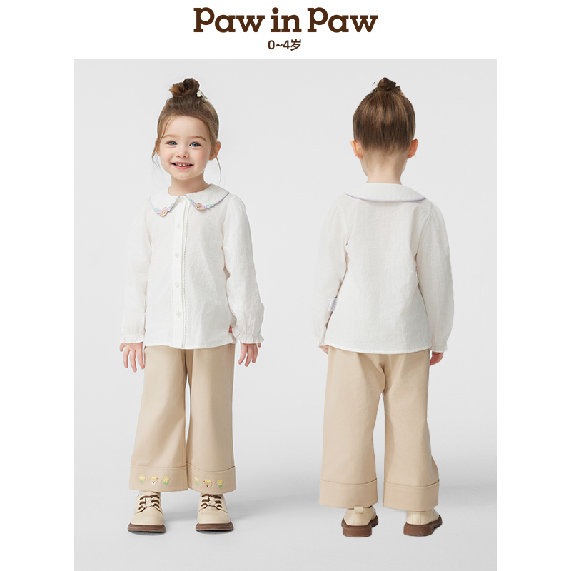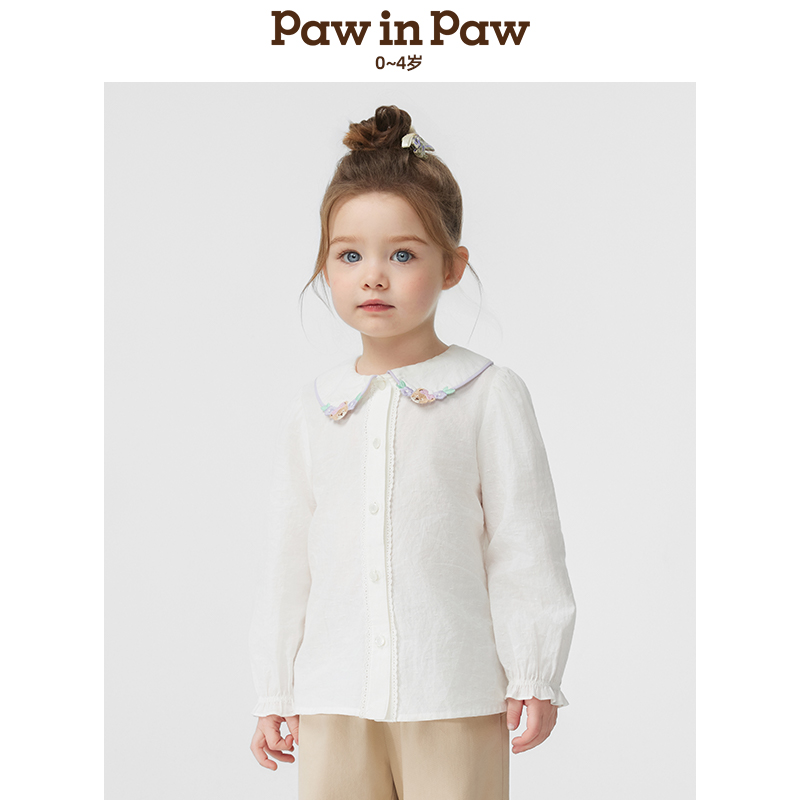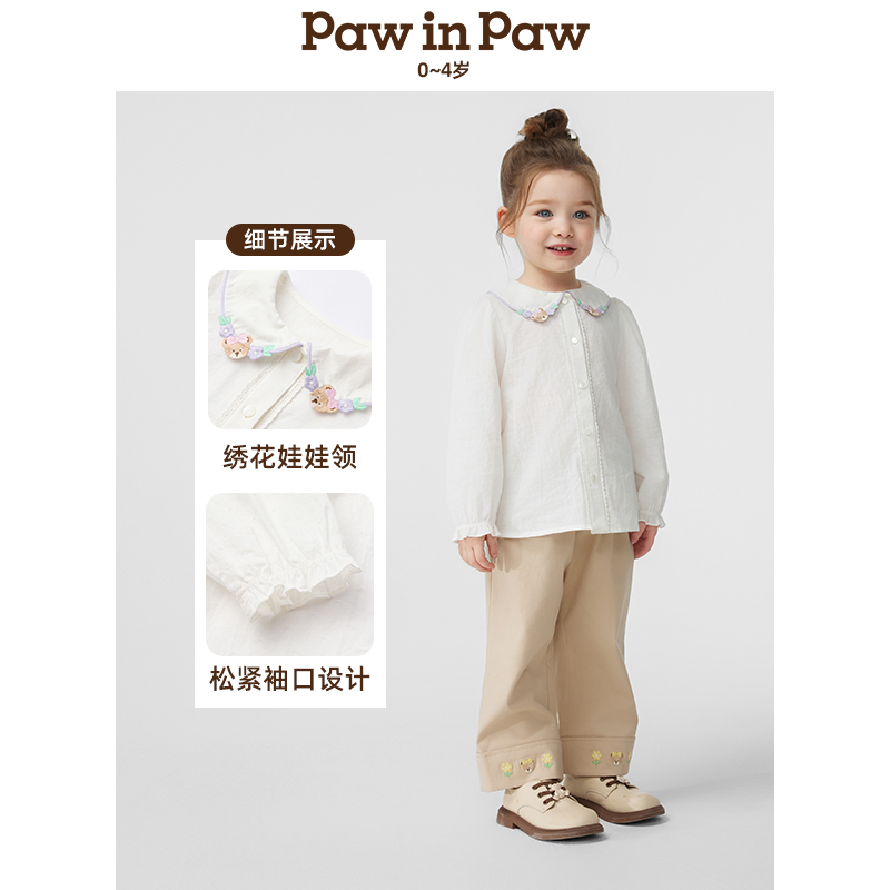25春夏新款 PawinPaw卡通小熊童装 女宝宝花边纯棉衬衫 商场同款