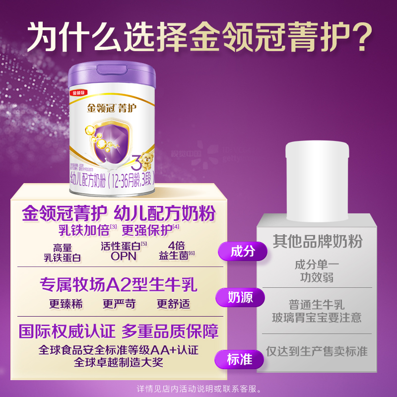 12个月较大婴儿牛奶粉800g 伊利金领冠菁护2段6 乳铁加倍