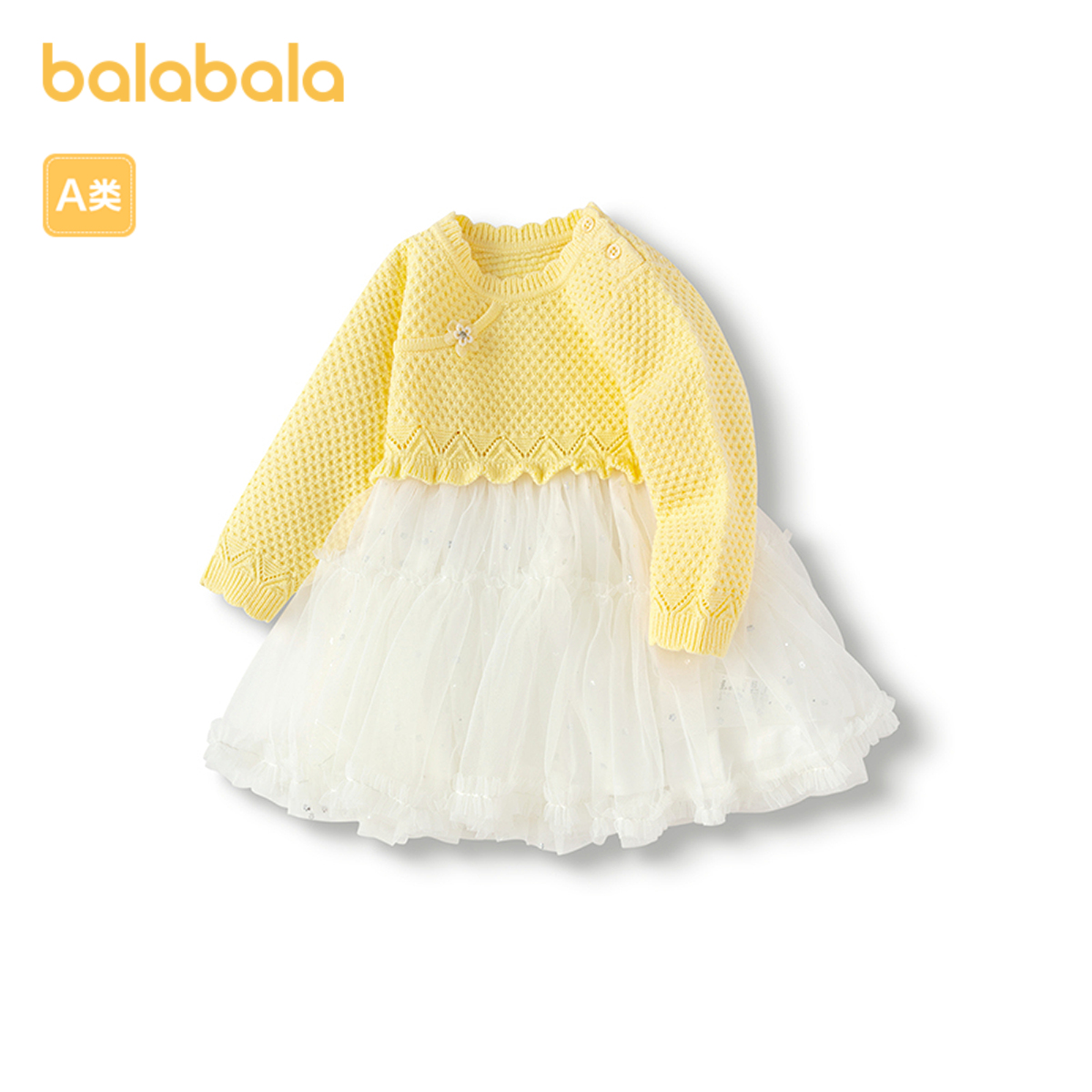 巴拉巴拉童装 女童宝宝连衣裙2025春秋婴儿公主裙甜美针织网纱拼接