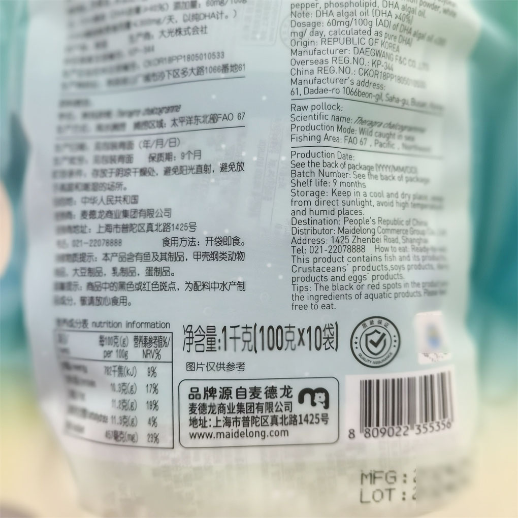 麦德龙代购 即食Q弹零食特产便携 麦臻选原味鳕鱼肠1kg韩国进口袋装