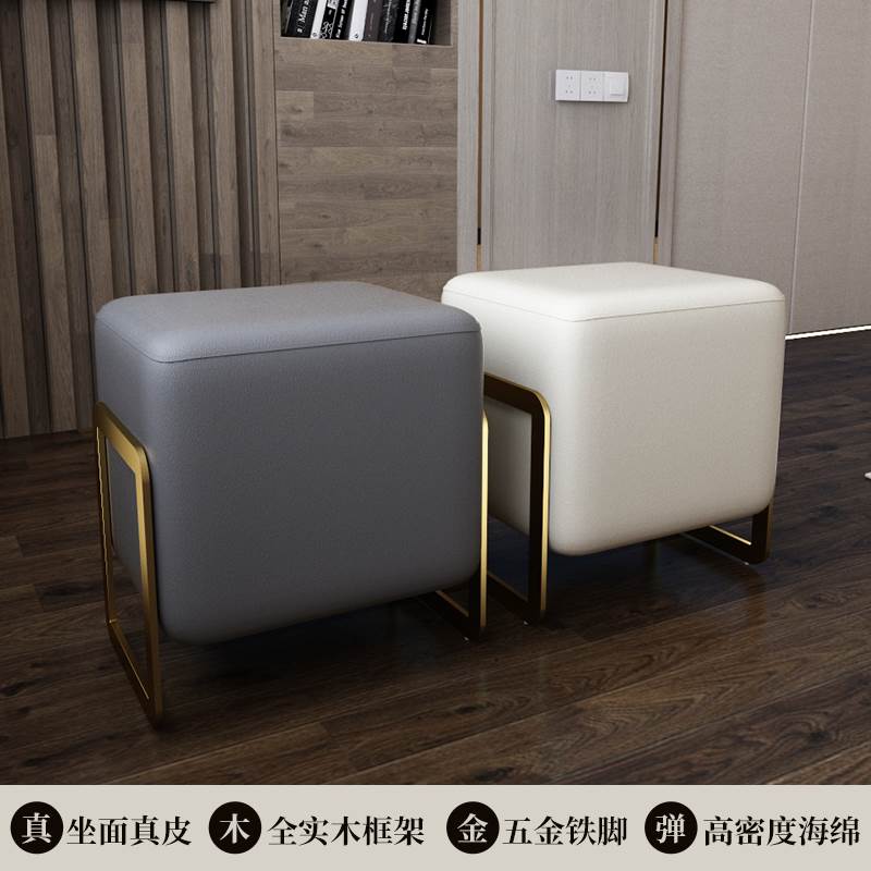 泉嘉福简约卧室梳妆凳子家用创意方凳真皮客厅茶几凳家门口换鞋 凳