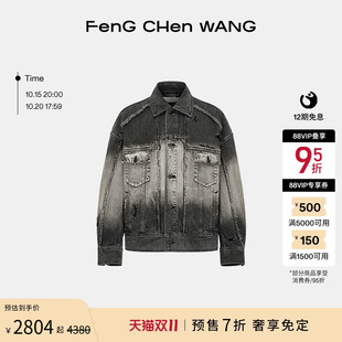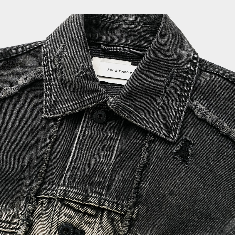 查尔斯桃心2025年新款 可拆卸连帽牛仔夹克男磨白单排扣多口袋外套