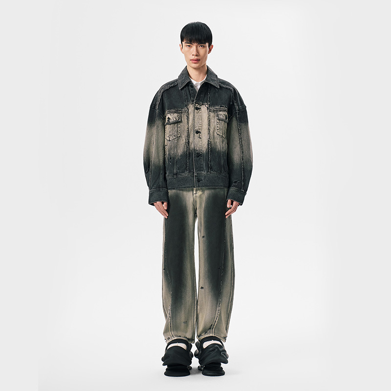 夹克上衣 潮牌美式 李一桐同款 INXXAPYD复古做旧牛仔外套男女同款