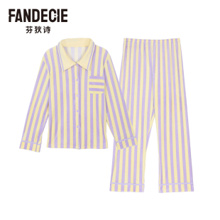 FL00444 宽松家居服套装 芬狄诗商场同款 睡衣女水晶绒条纹翻领开衫