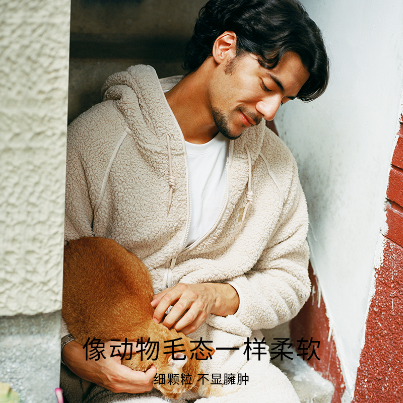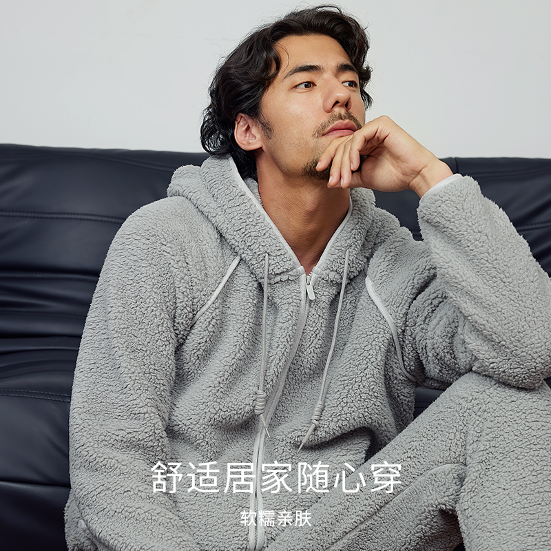 冬男生外穿连帽家居服套装 羊羔绒加绒加厚新款 睡衣男款 七匹狼男士