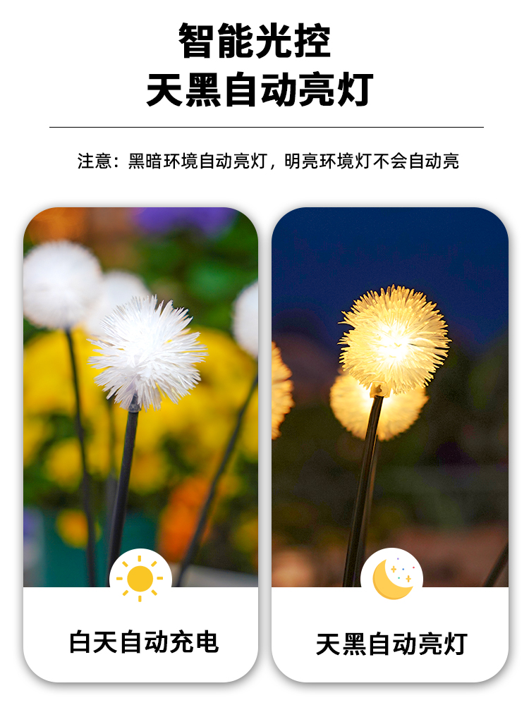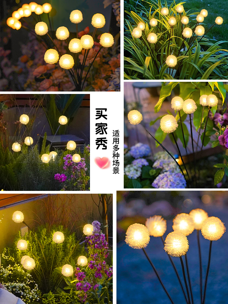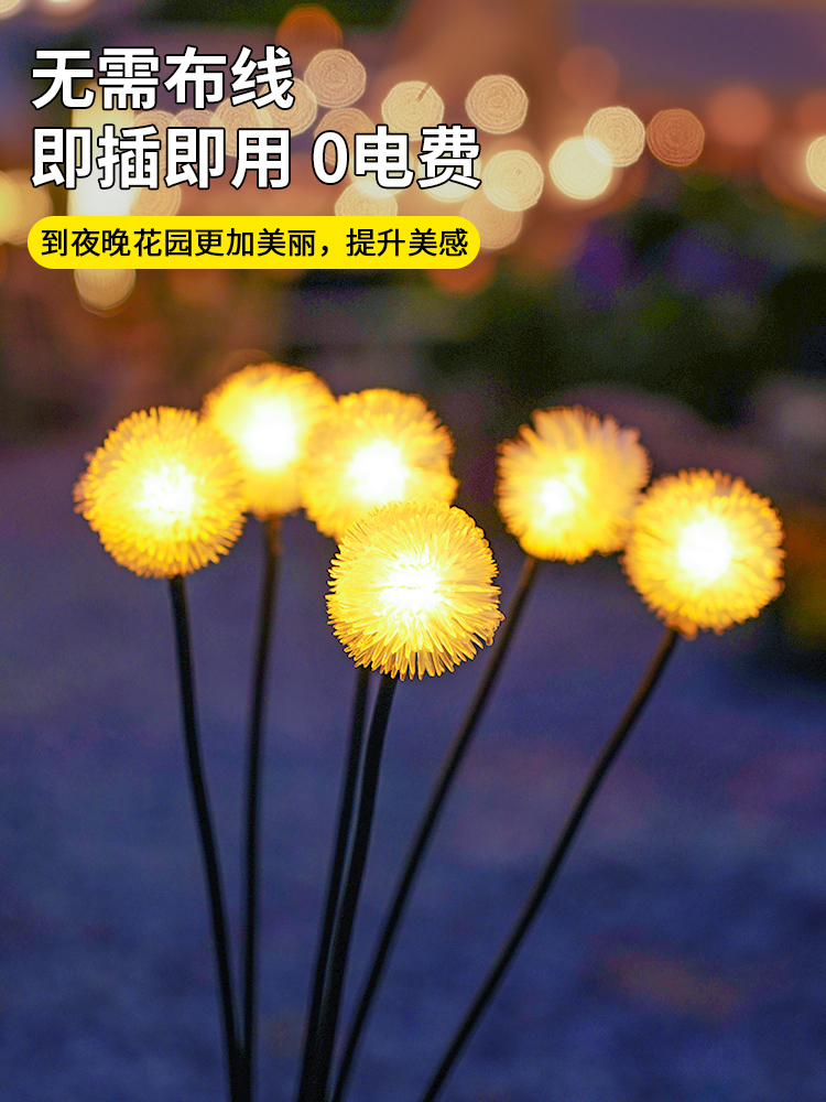 太阳能庭院灯户外防水萤火虫灯花园氛围布置装 饰地插草坪蒲公英灯