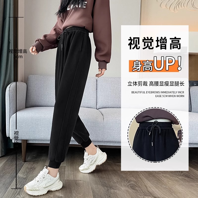 2025年新款 棉保暖运动束脚卫裤 宽松加绒女休闲裤 大码 春秋季 防风裤