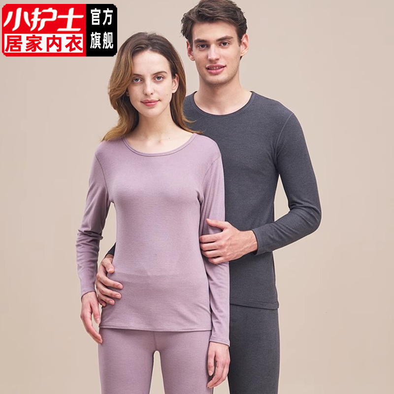 打底圆领套装 小护士保暖内衣男女士薄款 发热磨毛含桑蚕丝秋衣秋裤
