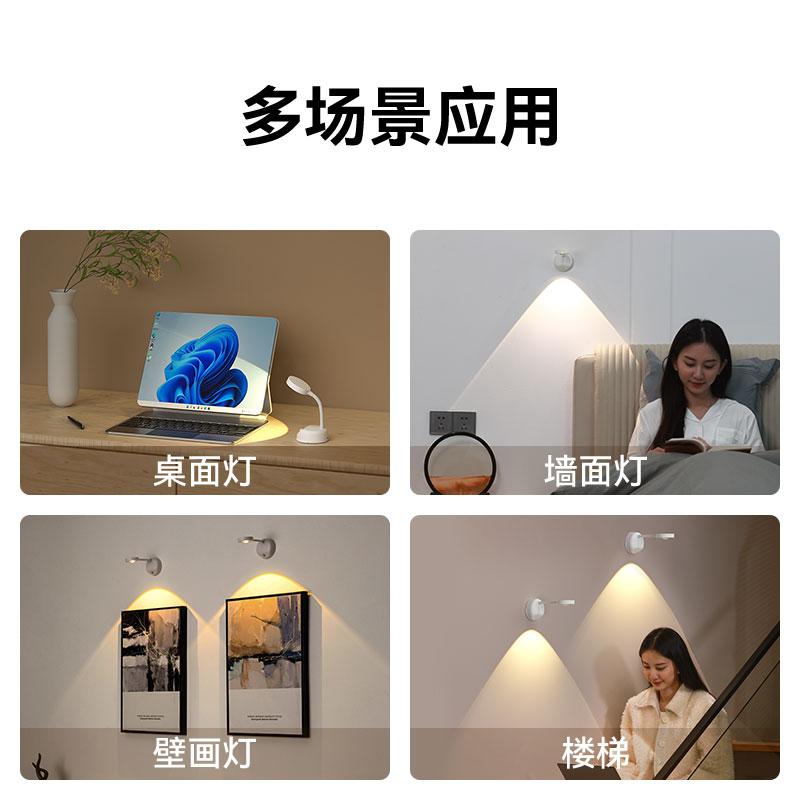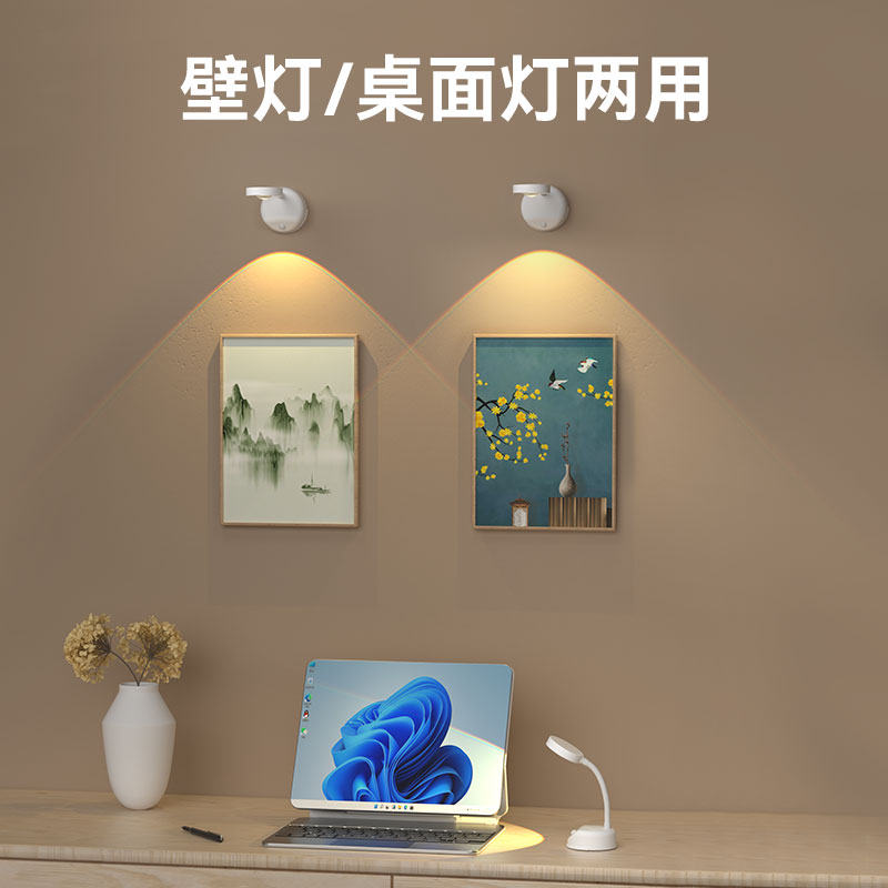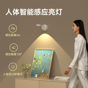 高级氛围感壁画射灯免接线免打孔充电款 壁灯洗墙灯感应灯人来即亮