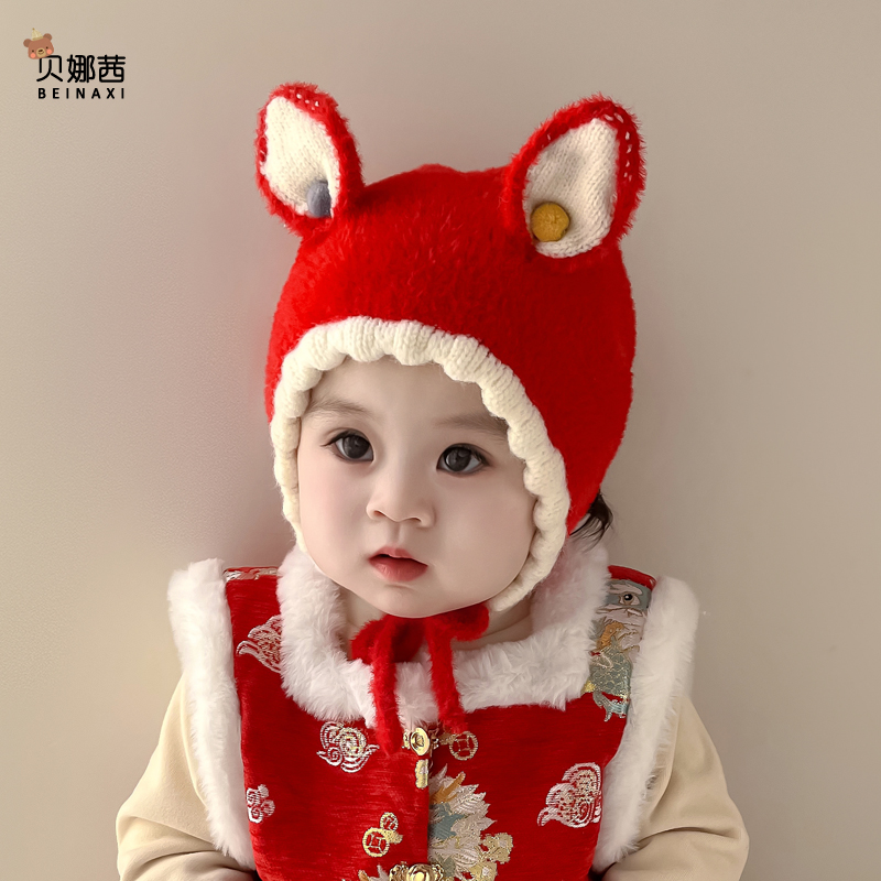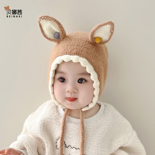 宝宝帽子秋冬季 婴儿护耳帽儿童围巾围脖一体帽男童女童户外冬防风
